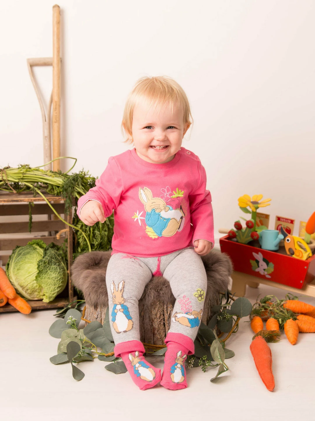 Featuring a snoozy Peter Rabbit on the bottom, and another on each leg, these leggings are enhanced by the pretty flowers growing up them. Our leggings are stretchy and seamless to enable total freedom when playing and have a lovely wide, ribbed waistband for comfort. The bottom is designed to stretch around nappies, including cloth ones. Compositon : 75% Cotton/ 20% Polyamide/ 5% Elastane Blade & Rose is a leading British children’s clothing brand specialising in a trendsetting range of leggings and clothing accessories. Blade & Rose was created in 2010 whilst designer Amanda was on maternity leave. Which ultimately led the company to be named after her childrens middle name ‘Blade’ and ‘Rose’. Each piece of the collection is unique and has the trademark design on the bum. A major component of the development was to ensure that the quality of the fabric was durable, functional, would wash well and most importantly, that was soft and kind to children’s delicate skin. The initial range quickly sold out and now the British family business has stockists all over the world including Germany, Switzerland, France, Spain, Belgium, Italy, Netherlands, Greece, Japan, China, Taiwan, UAE, New Zealand and Australia & is now extensively rolling out in the USA. Blade & Rose will continue to extend the clothing range with matching accessories and new designs.