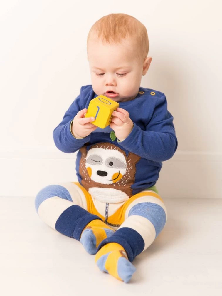 Made for those slower, hanging around the house days, it’s Silas the Sloth. Chunky multicoloured stripes and a fluffy Silas on the bottom. Compositon : 75% Cotton/ 20% Nylon/ 5% Elastic Blade & Rose is a leading British children’s clothing brand specialising in a trendsetting range of leggings and clothing accessories. Blade & Rose was created in 2010 whilst designer Amanda was on maternity leave. Which ultimately led the company to be named after her childrens middle name ‘Blade’ and ‘Rose’. Each piece of the collection is unique and has the trademark design on the bum. A major component of the development was to ensure that the quality of the fabric was durable, functional, would wash well and most importantly, that was soft and kind to children’s delicate skin. The initial range quickly sold out and now the British family business has stockists all over the world including Germany, Switzerland, France, Spain, Belgium, Italy, Netherlands, Greece, Japan, China, Taiwan, UAE, New Zealand and Australia & is now extensively rolling out in the USA. Blade & Rose will continue to extend the clothing range with matching accessories and new designs.