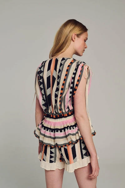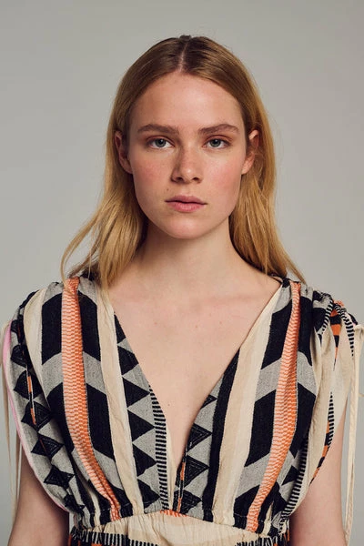 Devotion Twins Astakida Top – Black/Orange Deep V-neckline Adjustable tie straps at the shoulders Smocked waist Peplum hem Measurements for size “S”: Length 61cm, Elastic waist 37cm/74cm Devotion Twins is 100% made in Greece. The woven fabrics are made of high quality Greek cotton. The collection is handmade with care by a dedicated team. Each item is carefully washed, steamed and sprayed with Devotion Twins signature scent. All garments can be ironed and washed on 30 degrees. Please do not tumble dry. Model wears: The model is 177cm/5’10” and wears a size S Material: 100% COTTON