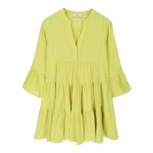 The Kinaros Mini Dress by Devotion is crafted in a gorgeous lightweight waffle fabric, new for summer 2022. Boasting loose 3/4 sleeves and a relaxed fitting tiered skirt, this short lime dress is a stylish option for summer holiday styling. Versatile enough to wear in the evening or by the poolside, this eye-catching lime dress is made from breathable cotton. Lightweight waffle fabric Short length Lime green 3/4 sleeves Care Instructions: Machine washable according to care label Fabric Composition: 100% cotton