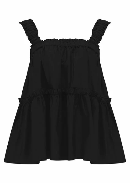 The Xios is a new style for Devotion Twins, this classic black cotton, lightweight top features: Ruched wide straps, elasticated Elasticated bust with ruching Frill trim across the middle A-line floaty shape Made from 100% Cotton One Size Transition from day to evening in style paired with some Paige white jeans and Manebi wedges for a easy evening look. This Devotion top is made from 100% Cotton Machine wash cold with similar colours, do not tumble dry
