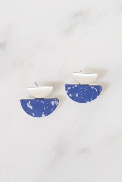 Cresent shaped brushed Silver metal and resin earrings. Dimensions: Drop 1.7cm Width:2cm Nickel-free and hypoallergenic Light-weight to wear All earrings are non-refundable for hygiene reasons.