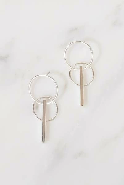Silver interlinked circles with a swinging drop bar. Dimensions: Drop: 4cm Nickel-free and hypoallergenic Light-weight to wear All earrings are non-refundable for hygiene reasons.