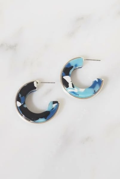 Blue and White marble pattern curved earrings with Silver rim. Dimensions: Diametre: 2.7 cm x 2.5cm Nickel-free and hypoallergenic Light-weight to wear All earrings are non-refundable for hygiene reasons.