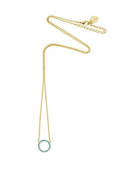 Lilac Rose Blue Cz Circle Gold Plated Necklace