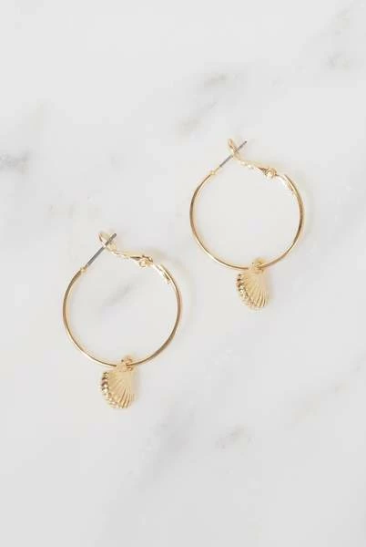 Shell hoop earring in Gold. Dimensions: Diameter: 2cm Nickel-free and hypoallergenic Light-weight to wear All earrings are non-refundable for hygiene reasons.