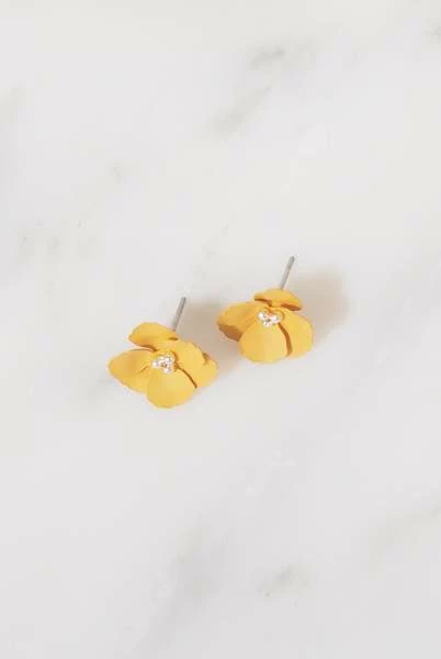 Mustard Small flower stud earrings in Silver. Dimensions: Diameter: 1.4cm Nickel-free and hypoallergenic Light-weight to wear All earrings are non-refundable for hygiene reasons.