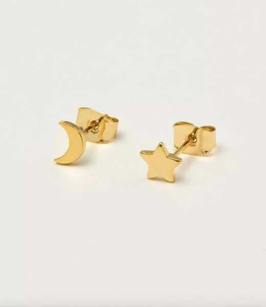 These delicate gold plated moon and star studs by Estella Bartlett are perfectly understated, an ideal everyday staple for your jewellery collection. This is a mixed pair of studs containing one moon and one star, perfect for tapping into the mix-match trend. All earrings are non-returnable.