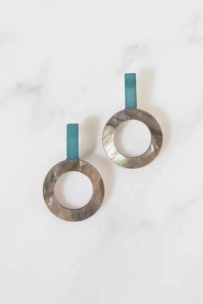 Drop Blue bar and shell disk earrings. Dimensions: Drop: 4cm Width: 2.5cm Nickel-free and hypoallergenic Light-weight to wear All earrings are non-refundable for hygiene reasons.