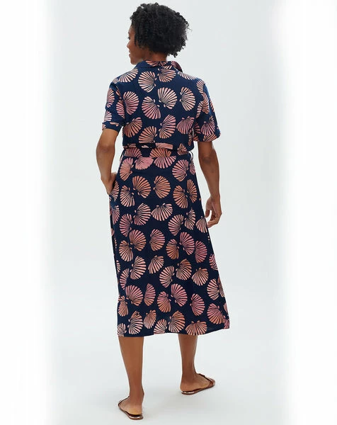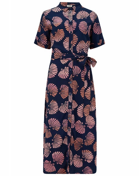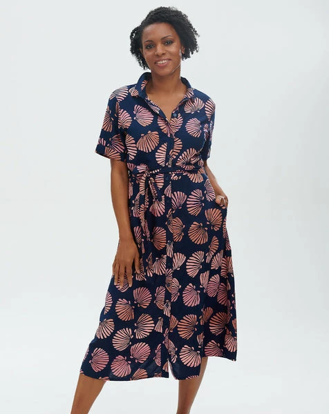 Lilac Rose Sugarhill Lauretta Batik Shirt Dress In Navy With Shells